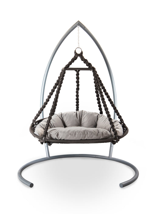 Royale hangstoel voor twee personen met stijlvolle draagtouwen. Breedte 185 cm, hoogte 240 cm. Verder heeft deze hangstoel een uiterste comfortabele zit en kussen's. De kwaliteit van de Stoel is zeer kwalitatief, u zult er in zitten en genieten van uw comfort.